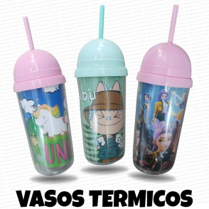VASO TERMICO PERSONAJES CON TAPA Y SORBETE