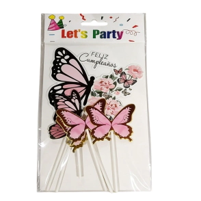 TOPPER FELIZ CUMPLE MARIPOSAS