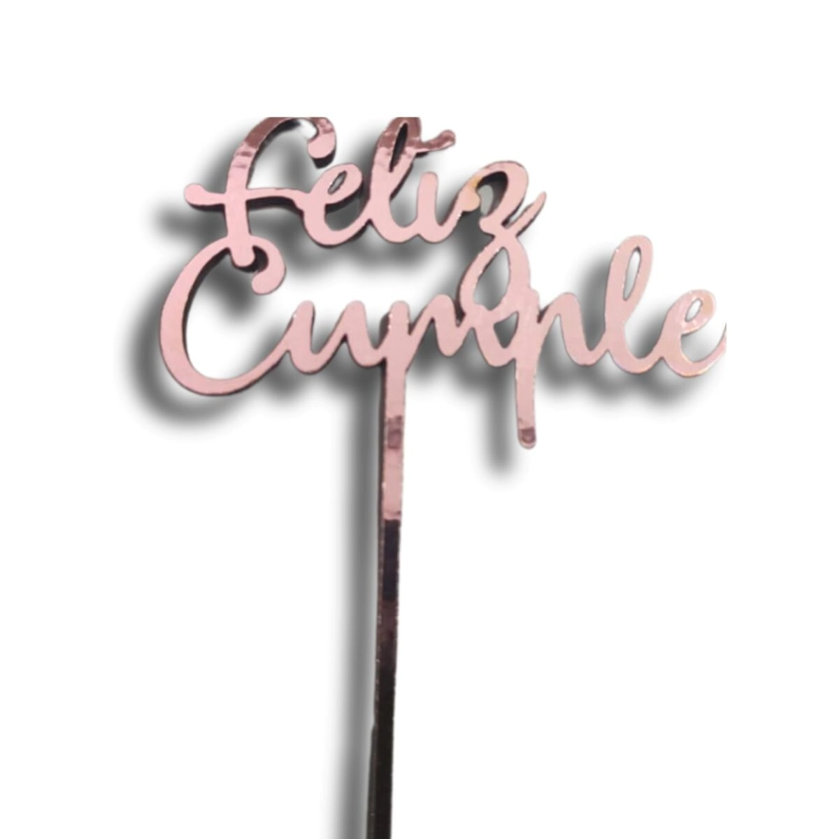 MINI TOPPER FELIZ CUMPLE METALIZADO X10U MDF ROSA GOLD