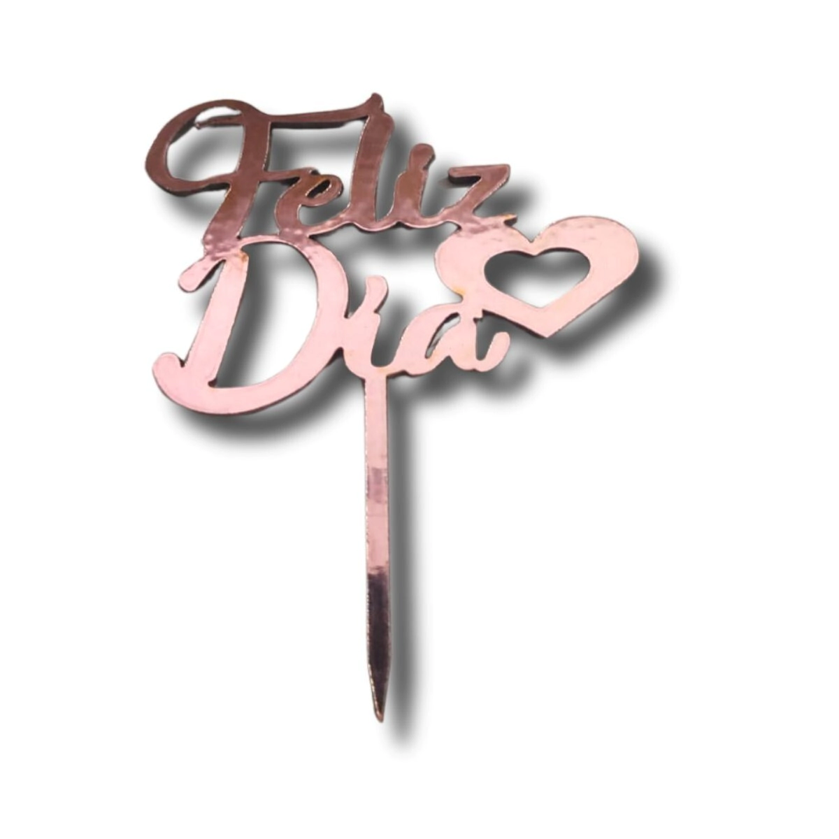 MINI TOPPER FELIZ DIA MDF METALIZADO X10U ROSA GOLD