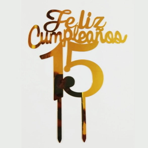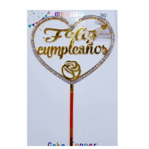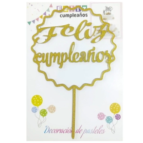 MINI TOPPER FELIZ CUMPLE METALIZADO X10U MDF