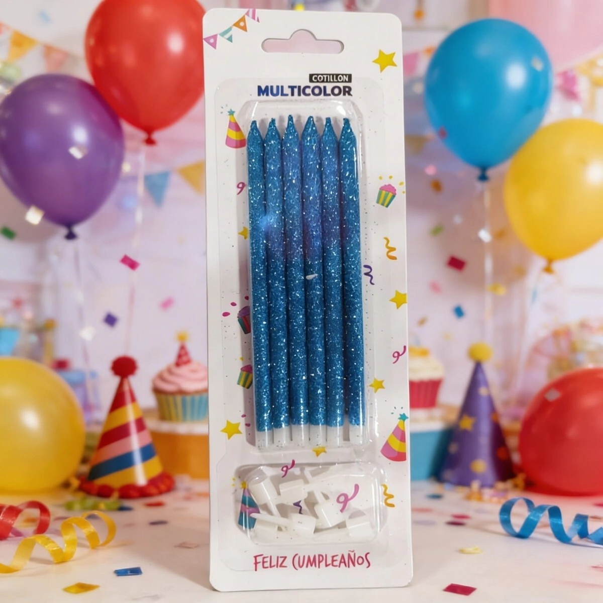 VELAS GLITTER 14CM CELESTE