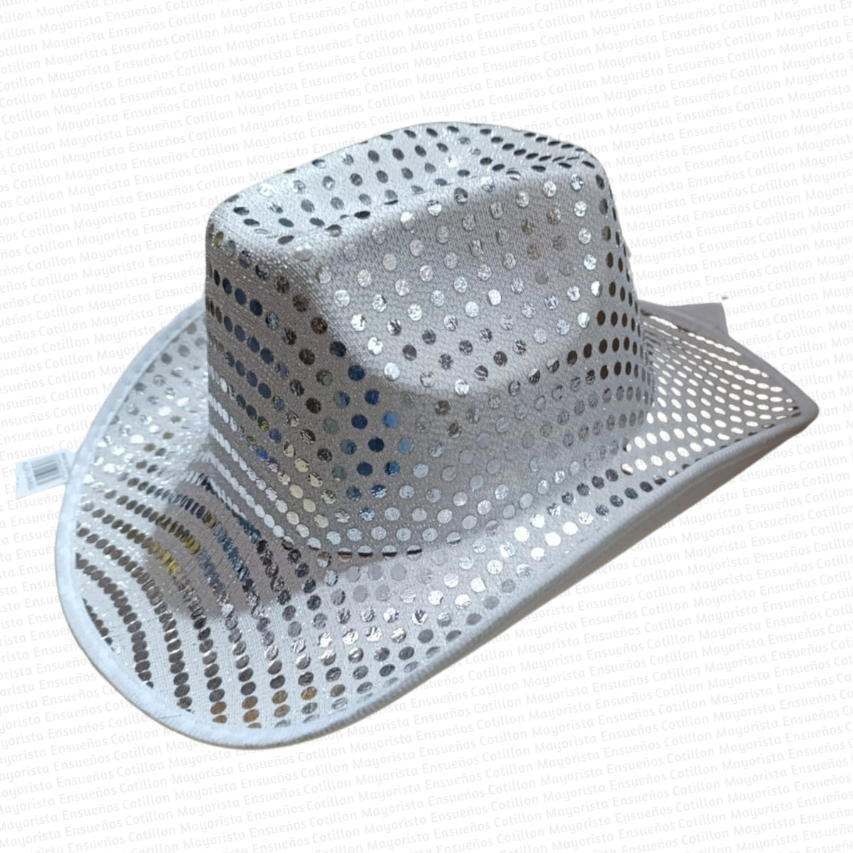 SOMBRERO VAQUERO CON LENTEJUELAS BLANCO
