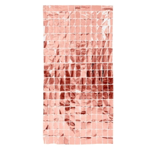 CORTINA METALIZADA CUADRADOS CHICOS ROSA GOLD