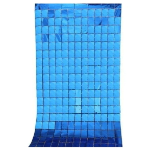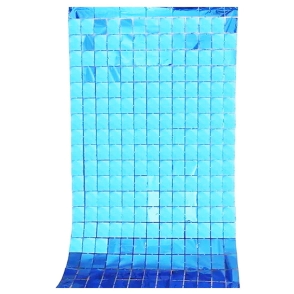 CORTINA METALIZADA CUADRADOS CHICOS AZUL