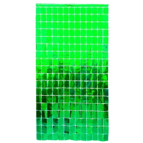 CORTINA METALIZADA CUADRADOS CHICOS VERDE