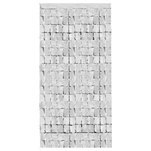 CORTINA METALIZADA CUADRADOS CHICOS PLATEADO