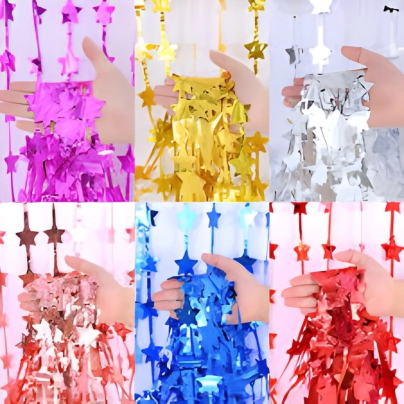 CORTINA METALIZADA ESTRELLAS FUCSIA