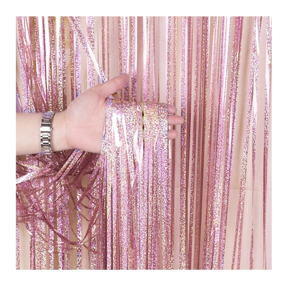 CORTINA METALIZADA LLUVIA HOLOGRAFICA ROSA