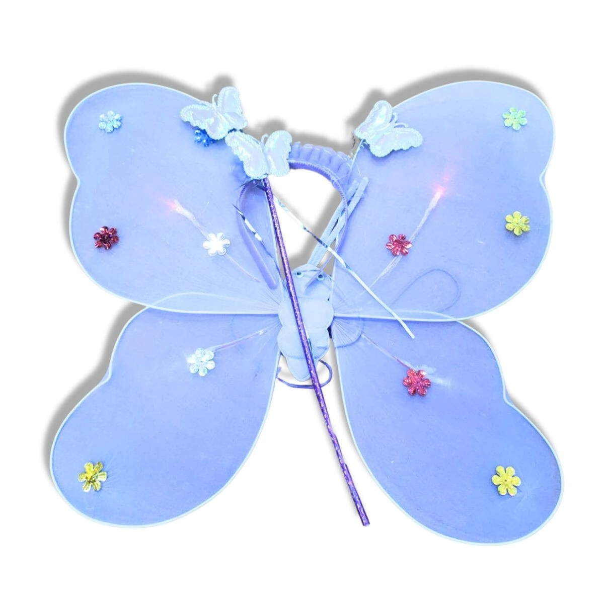 ALA MARIPOSA CON LED + VINCHA + VARITA CELESTE