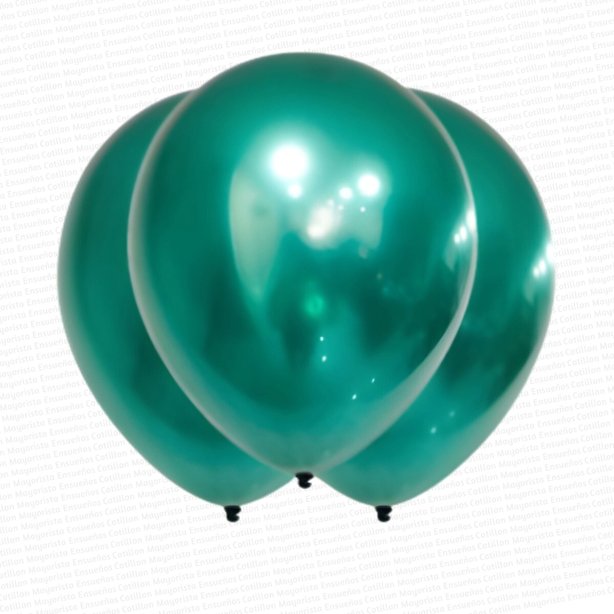 GLOBOS LATEX GLOBBY CROMO PLATINO 12" X10U VERDE