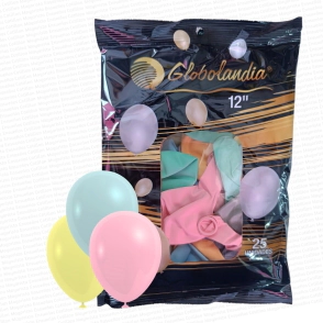 GLOBOS LATEX GLOBOLANDIA ESTANDAR/PASTEL 12" X25U