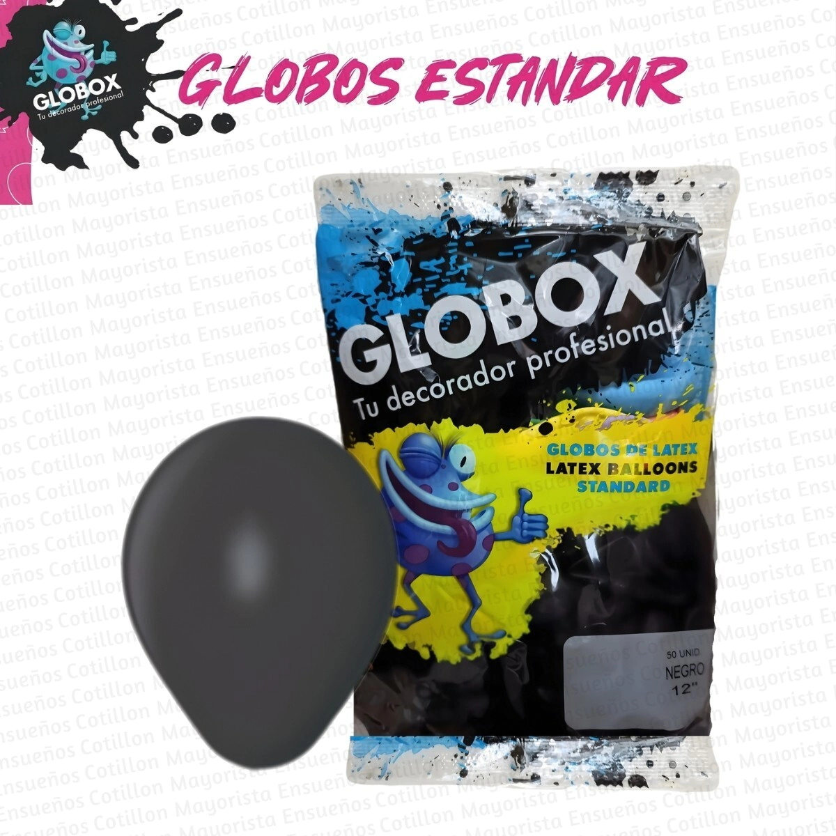 GLOBOS LATEX GLOBOX ESTANDAR 12" X50U NEGRO