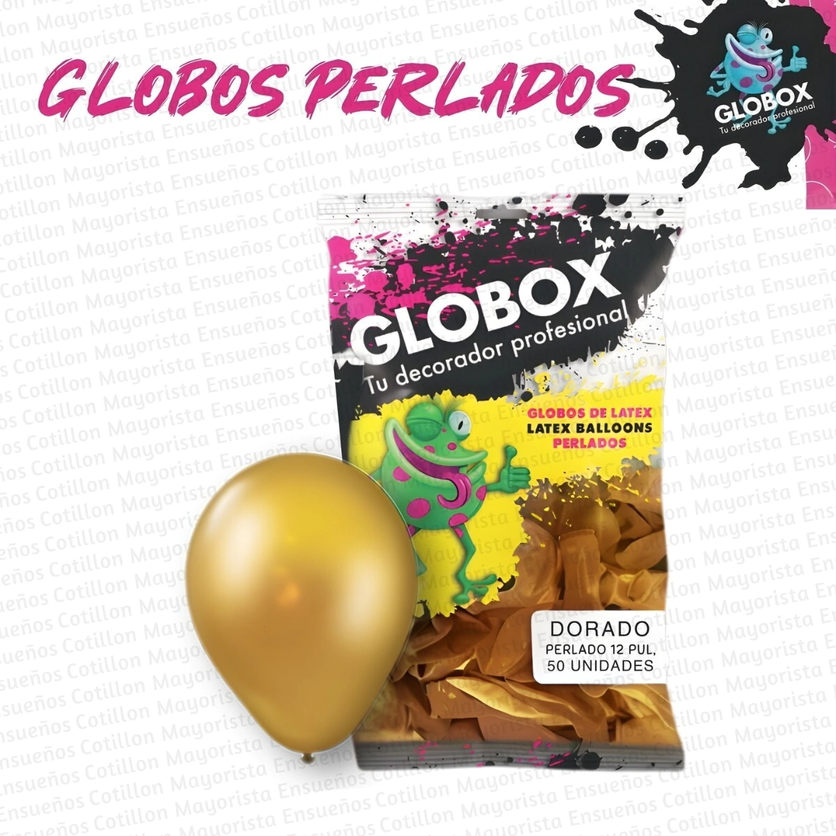 GLOBOS LATEX GLOBOX PERLADO 12" X50U DORADO