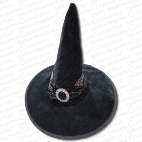 SOMBRERO DE BRUJA CON TELA Y CALAVERA DORADA